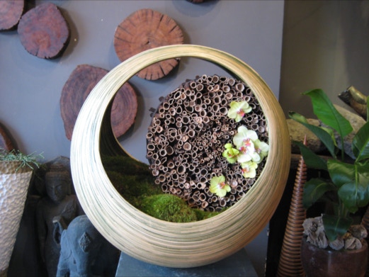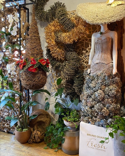 Structure is what makes Bruno’s work stand out from other florists.  In particular his use of branches and leaf manipulation which give his work a unique look and feel.                                                                                                            The Flower Arranger, Autumn 2021